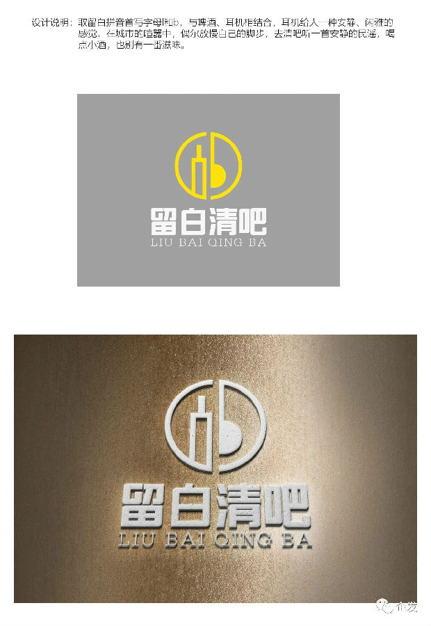 1、設計“留白清吧”LOGO,一個聽歌喝酒的地方。